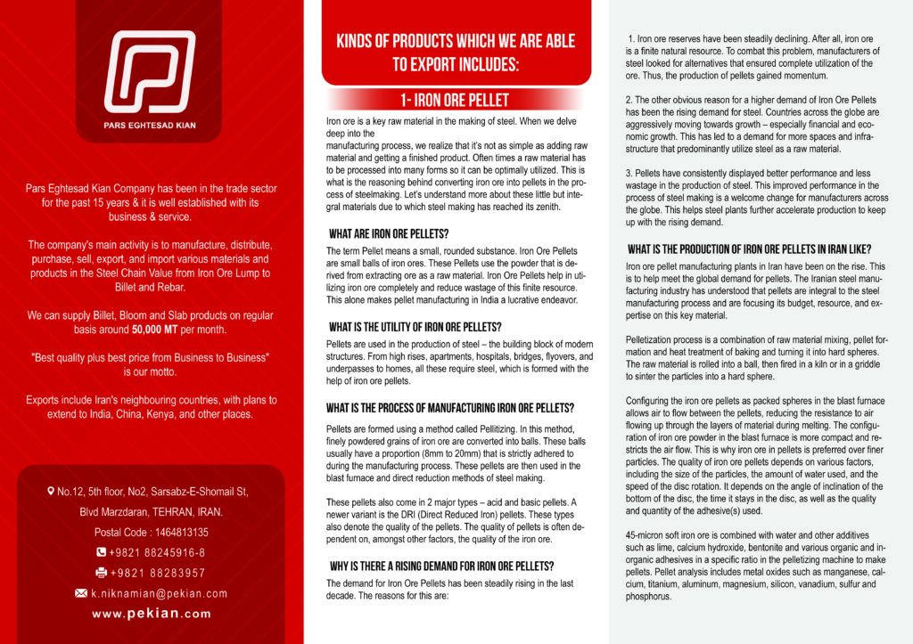 شرکت پارس اقتصاد کیان طی 15 سال گذشته در زمینه بازرگانی و واردات و صادرات مواد اولیه فعالیت داشته و در سال 1385، به طور خاص و ویژه در زمینه تامین مواد اولیه صنایع کشور و صادرات مواد معدنی و محصولات به بازارهای خارجی در داخل و خارج کشور فعال است. ماموریت و چشم انداز گسترش فعالیت شرکت پارس اقتصاد کیان ، با بهره گیری از